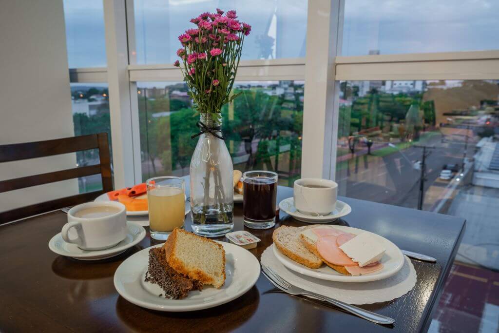 O café da manhã é servido de segunda a sábado das 6h30m às 9h30m, com exceção de domingos e feriados, que se inicia as 7h até as 10h. Para hóspedes, o café da manhã é cortesia.